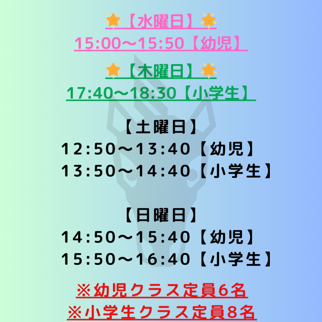 また土曜日幼児クラスは定員に達しました。