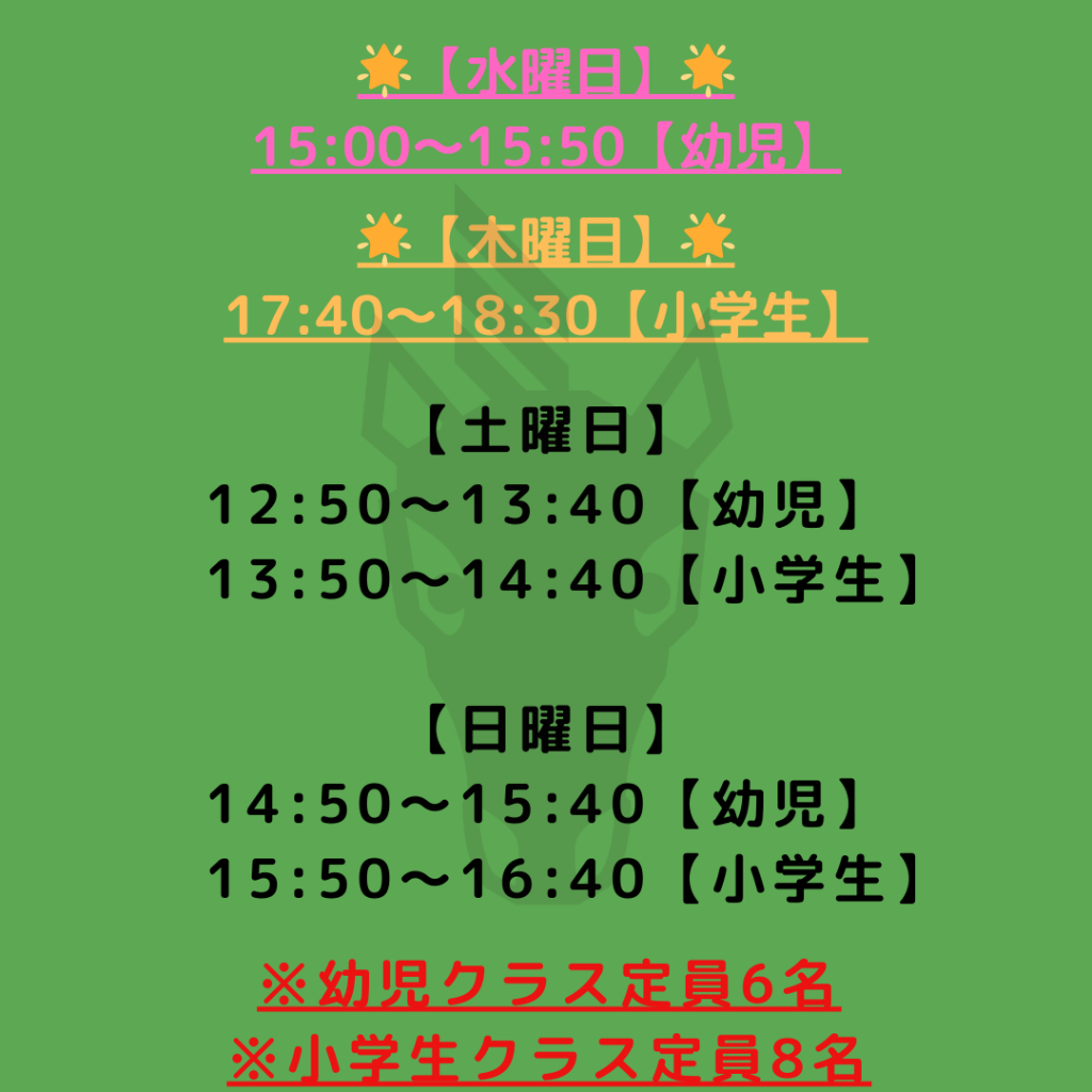 ※おやすみ等のご連絡があれば体験・振替可能です。