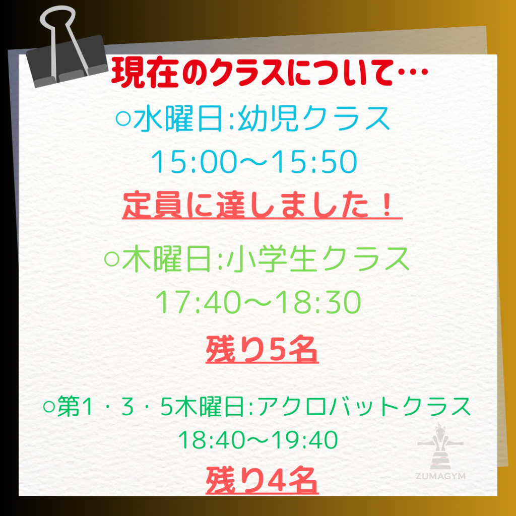 ☆また幼児クラスから小学生クラスへの移動等がありましたら随時お知らせさせていただきます。