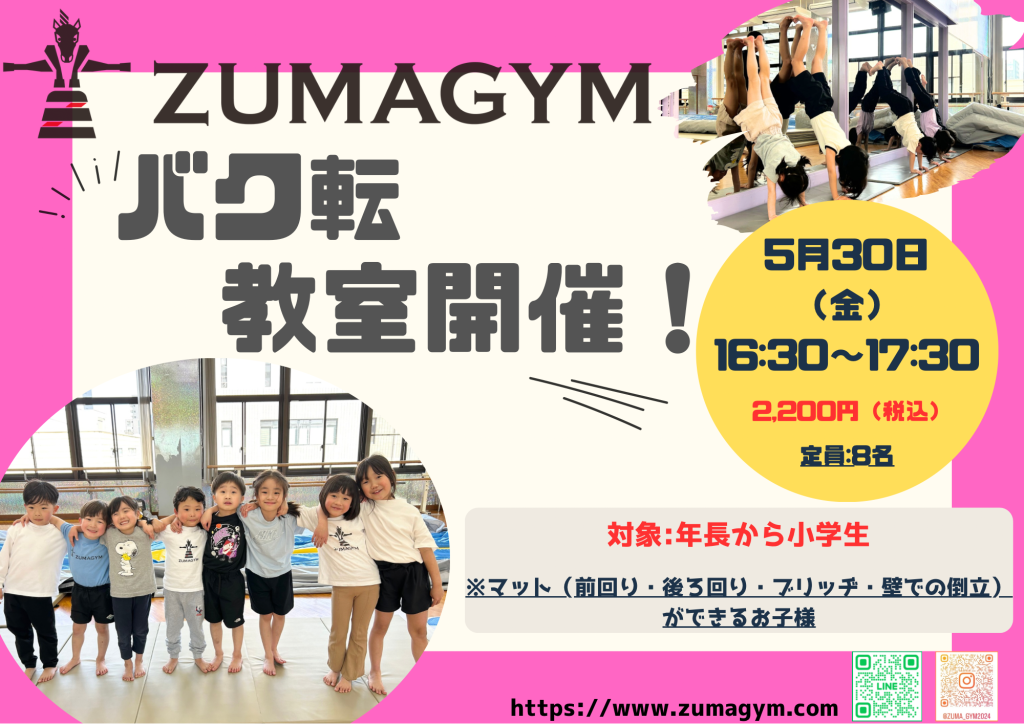 当日は基礎運動からマット→バク転の順番で行っていきます。