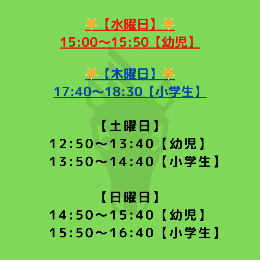 ☆日曜日 小学生クラス☆は定員に達しております。
