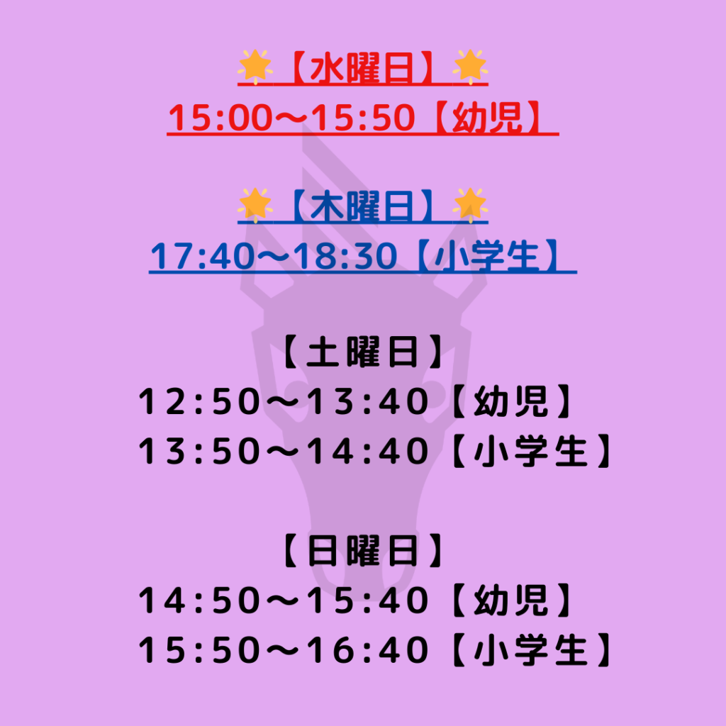 ※来年度4月より水曜日枠(幼児クラス)から金曜日枠(2コマ)にクラスが変わります。