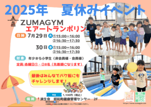 ZUMAGYM「2025 夏休みイベント」を開催します!!大きなロングエアートランポリンでいっぱい身体を動かそう!! 詳細は下記の概要をご覧ください。 お問い合わせはホームページまたは公式LINE・Instagram D […]