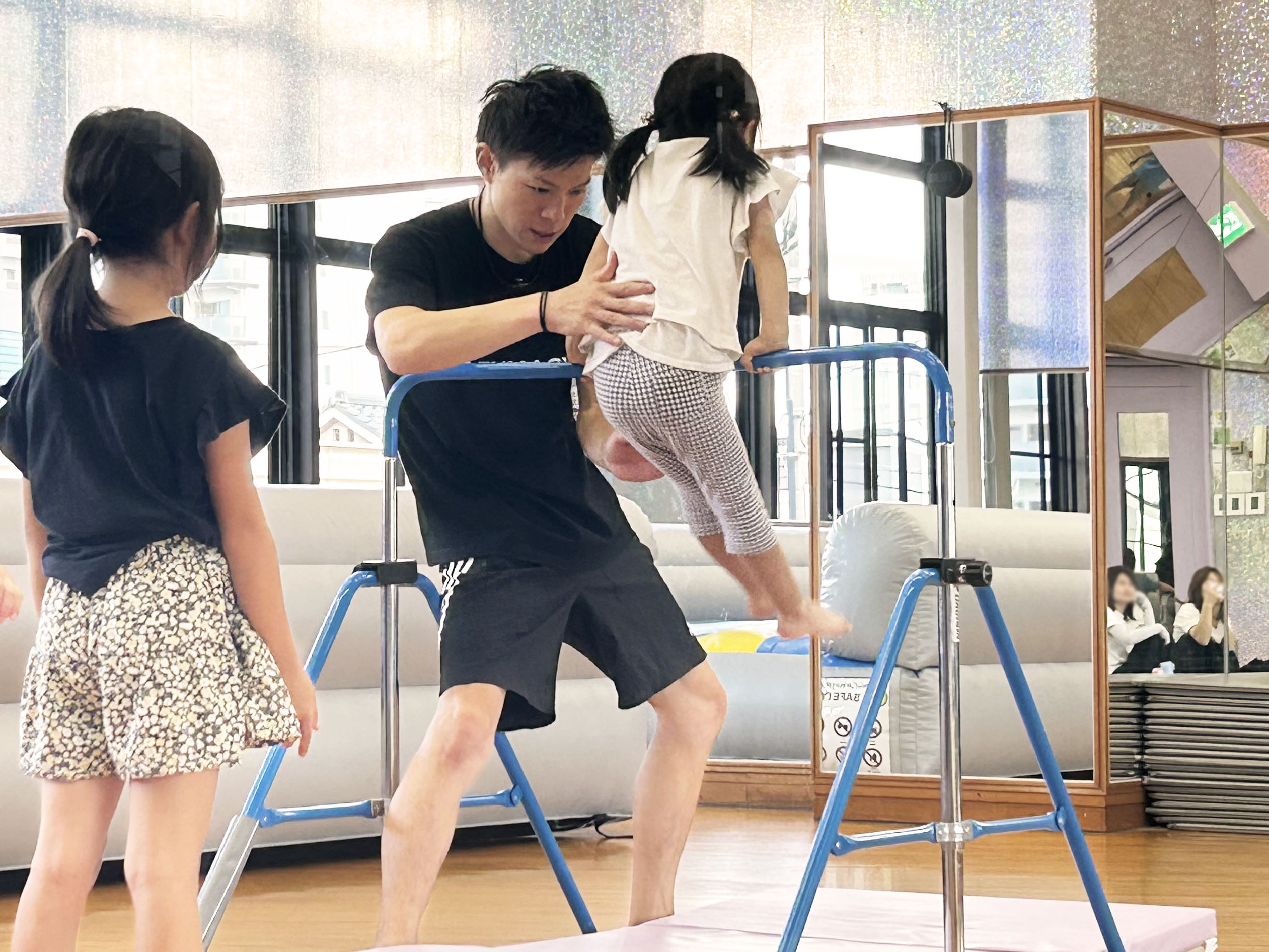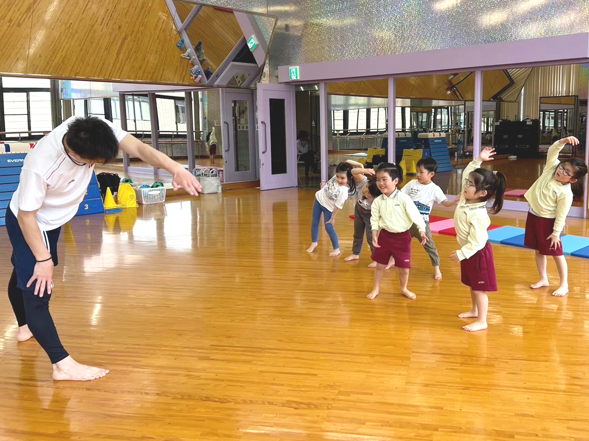 体づくりに必要な基礎的な動きや、ルールや決まりごとを覚えながら、マットやとび箱、鉄棒などの体操の器具に触れながら楽しく体を動かします。子供達に”できた”という達成感を感じられるように段階的なカリキュラムをご用意しております。