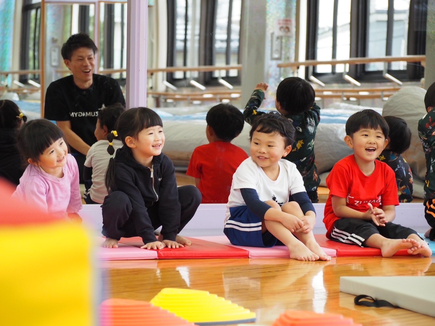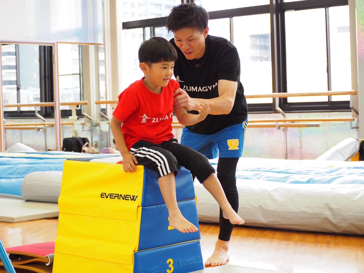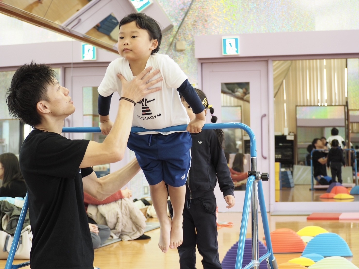 体操競技で元日本代表の経歴を持ったコーチが、お手本を見せながら子供たちに良いイメージを持たせて実践する練習方法を取り入れております。
